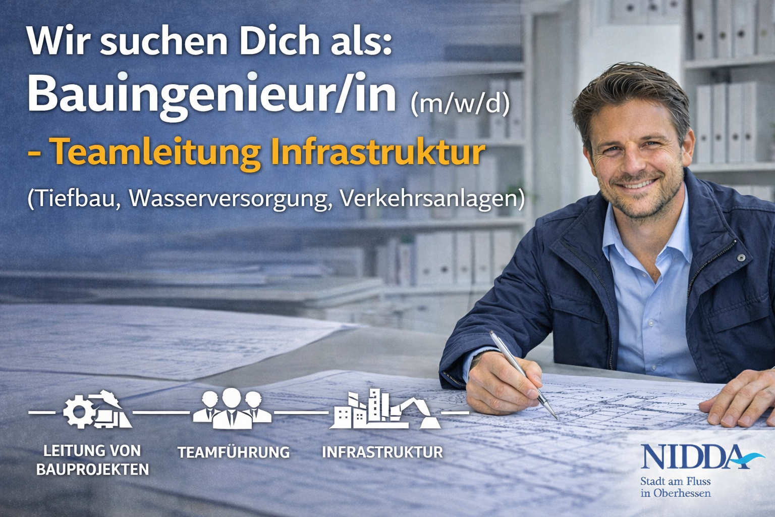 Bauingenieur/in (m/w/d)- Teamleitung Infrastruktur (Tiefbau, Wasserversorgung, Verkehrsanlagen) in 63667 Nidda